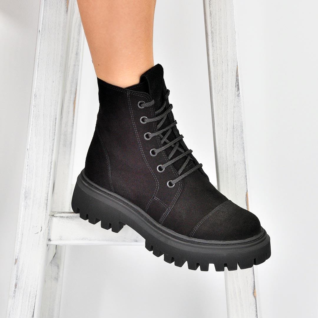 Cizme negre de piele intoarsa de dama Jana black velvet